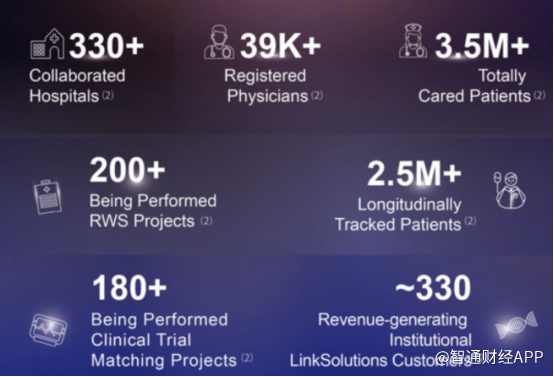 LinkSolutions业务方面,基于LinkCare平台的患者和医生参与度,以及通过LinkData系统建立的不同患者群体,LinkSolutions解决方案分为真实世界研究服务(RWS)、临床研究招募和数据洞察。