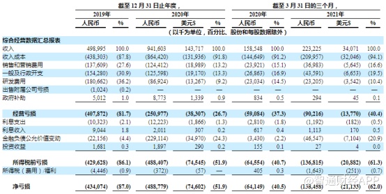 而在财务方面,2020年及2021年一季度,零氪科技在营收分别同比增长88.70%和40.79%的情况下,同期净亏损却分别同比扩大12.60%和115.84%。通过解构公司的成本和费用结构,投资者不难看出其中的问题。