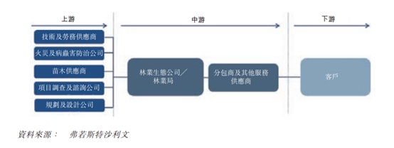 蒙树生态主要位于林业产业链的中游阶段,主要以项目形式提供服务,这些项目基本可以分类为传统模式,即项目拥有人委聘公司为总承包商,管理或执行整个项目(项目年期通常为三年)(包括采购、建设及维护阶段),或作为分包商为部分项目工程提供服务;及公私合营(PPP)模式,即包含建设阶段及运营阶段且整体项目年期介乎12至30年的长期合约协议模式。