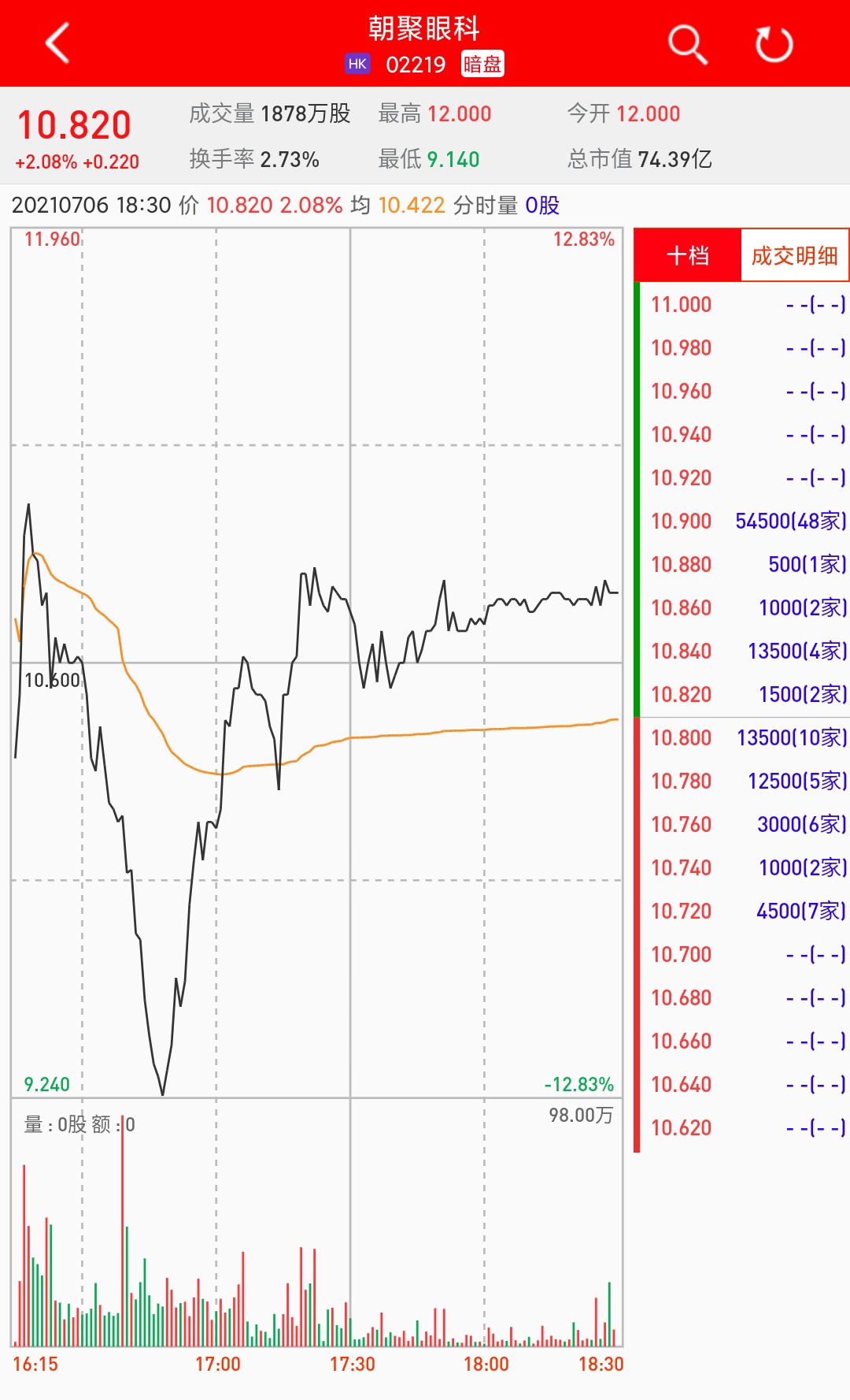 智通财经APP获悉,朝聚眼科(02219)将于7月7日(星期三)在香港挂牌。截至暗盘收盘,利弗莫尔证券暗盘交易显示报价10.82港元,较招股价10.6港元涨2.08%。每手500股,不计手续费,每手赚110港元。