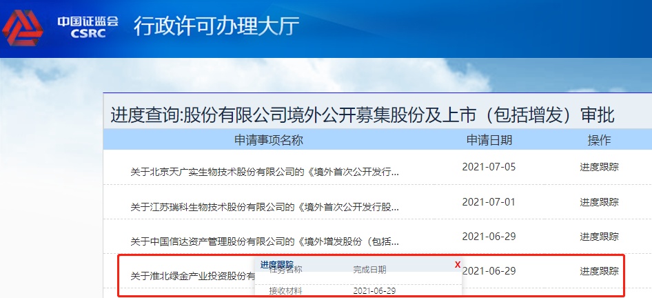 一旦获得受理,就意味着淮北绿金产业投资取得“小路条”,或很快就在海外递交上市申请。