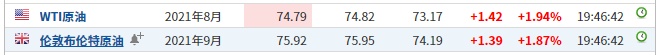 截至发稿,WTI原油涨1.94%,报74.79美元/桶。布伦特原油涨1.87%,报75.92美元/桶。