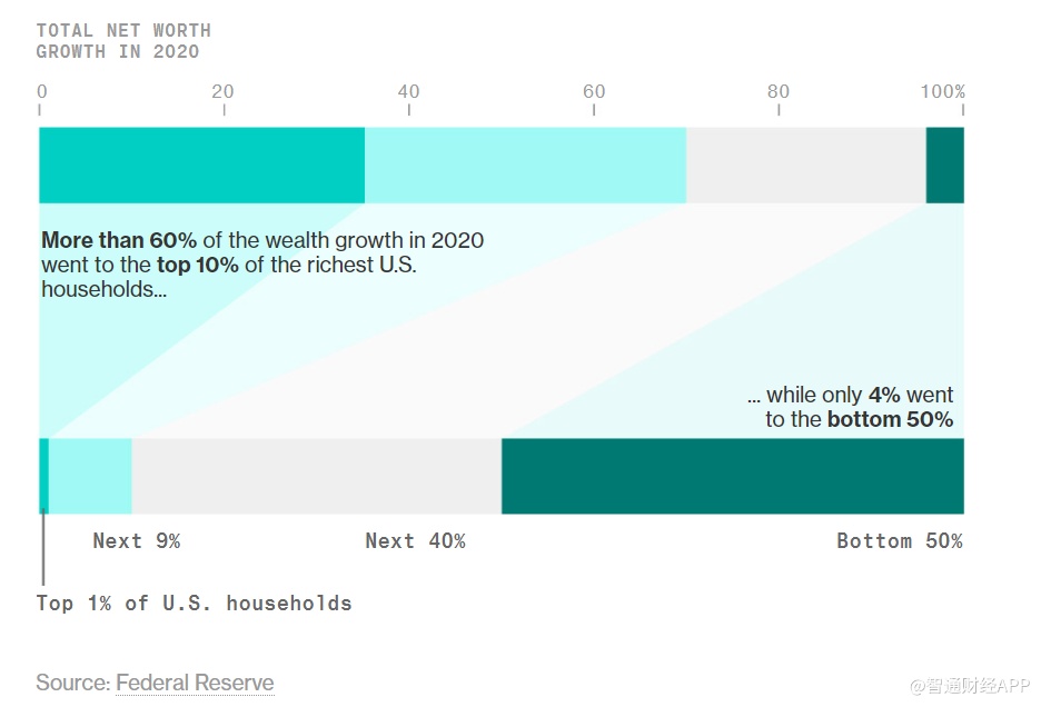 但是,过度的宽松无疑会进一步拉开贫富差距,如拥有科技股、房地产等众多资产类别的富人财富大幅增加,美联储亦有数据证明过去一年富人如何变得更富,穷人是如何进一步落后的。