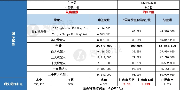国际配售申购人数未披露,认购倍数约3.2倍。