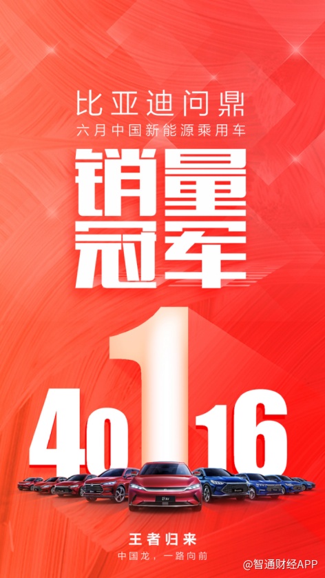 随着各家车企6月销量相继发布,中国市场新能源乘用车6月的销量冠军正式出炉——比亚迪新能源乘用车月销40116辆,创其新能源乘用车月销纪录新高,问鼎中国新能源乘用车6月销量冠军。比亚迪以领先的技术创新和产品实力得到了市场的充分认可,引领新能源车市场,为中国汽车正名。