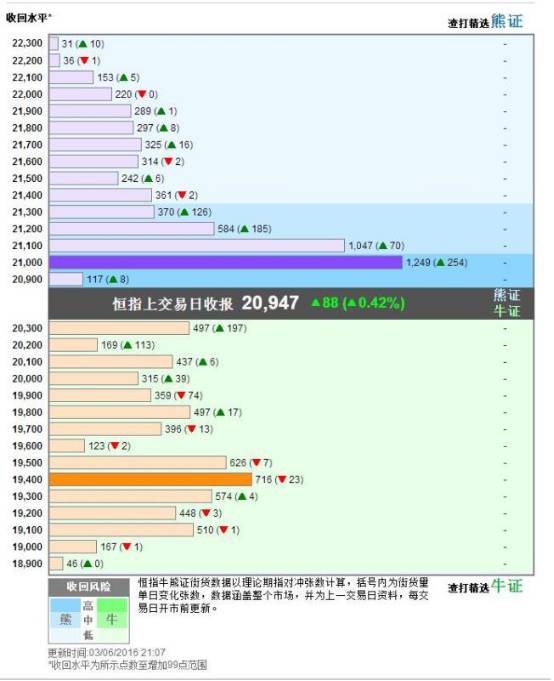 总结上周,憧憬深港通快公布,恒指累涨371点,涨幅1.8%,国企指数一周累涨2.49%。深港通宣布前夕,各路资金其实都相当谨慎。不过恒生指数会受到政策消息偏好情况下短暂看多,从恒指牛熊证分布图(图一)上可以看出。大摩明确表示,深港通不会对恒生指数及国企指数带来明显支持作用,对港股刺激有限。恒指21000点聚集大批熊证必被绞杀(图二),不宜轻易做空。