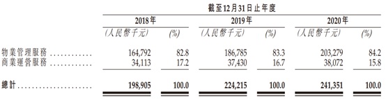 从收入结构来看,融汇悦生活超过80%的收入来自物业管理服务。报告期内,其物业管理服务业务线的收益分别为1.65亿元、1.87亿元与2.03亿元,分别占当期总收入的82.8%、83.3%与84.2%。