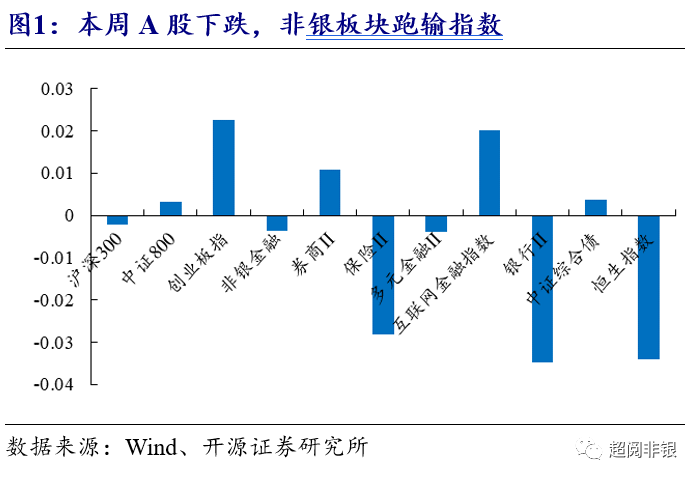 2、市场回顾:A股整体下跌,非银板块跑输指数