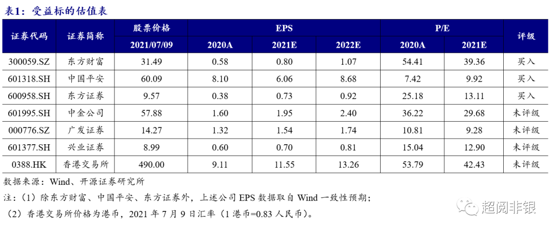 券商:东方财富,香港交易所,中金公司,东方证券,兴业证券,广发证券;