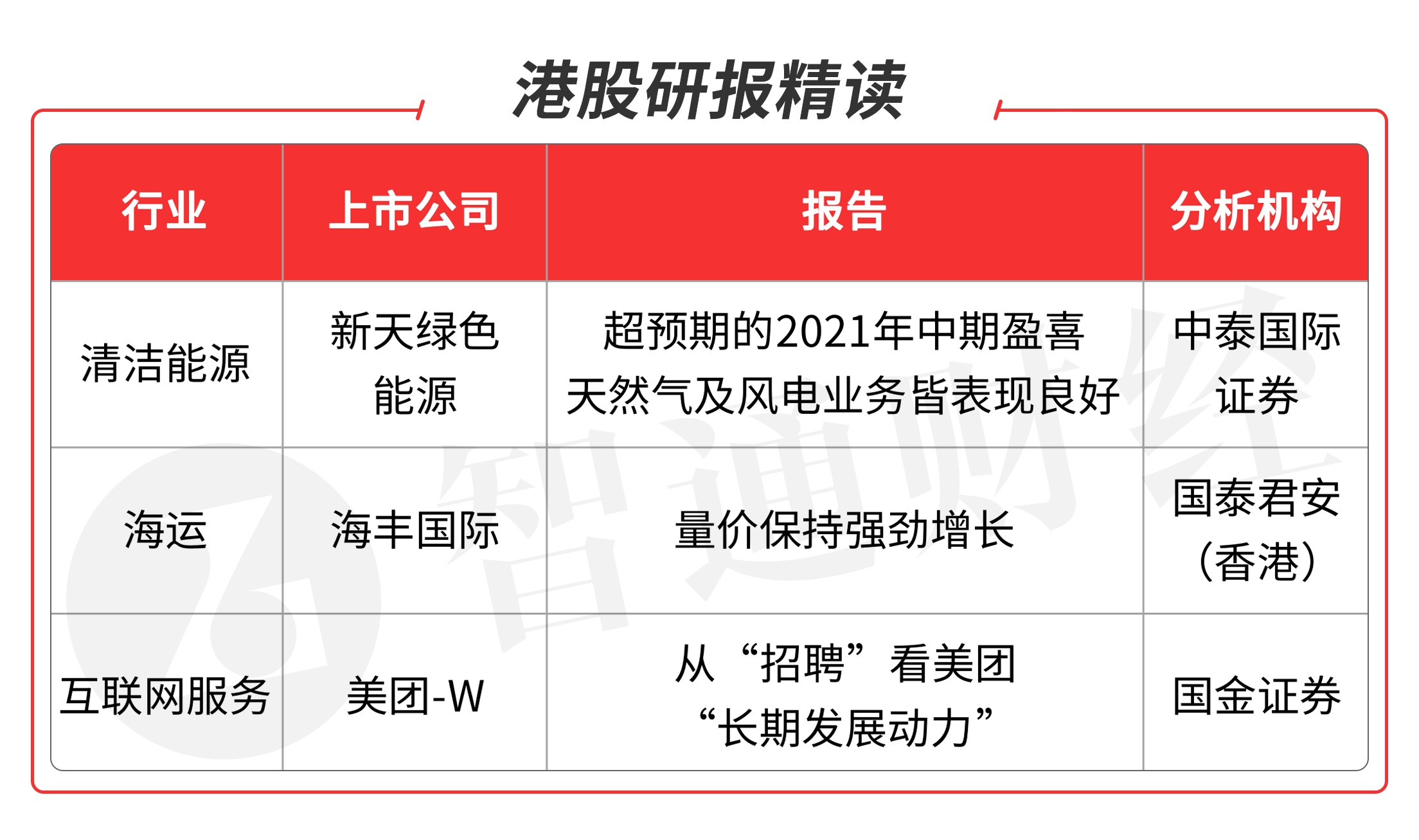 1、新天绿色能源(00956):公司公布超出我们及市场预期的2021年中期盈喜,预计上半年股东净利润同比上升 60.5%-70.0%至15.20