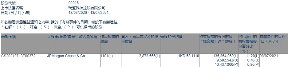 智通财经APP获悉,香港联交所最新资料显示,7月8日,小摩增持瑞声科技(02018)287.37万股,每股作价53.11港元,总金额约为1.53亿港元。增持后最新持股数目约为1.35亿股,最新持股比例为11.2%。