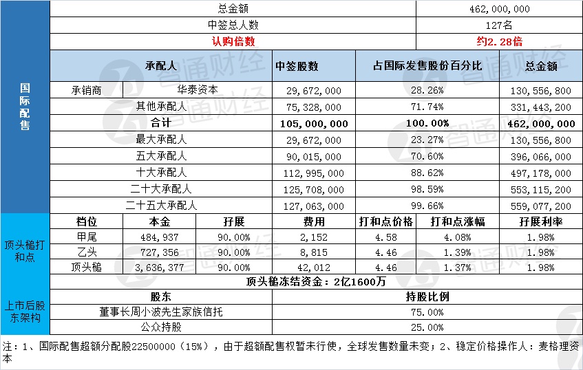 国际配售申购人数未披露,认购倍数约2.28倍。