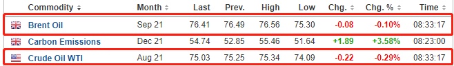 截至发稿,WTI原油跌0.29%,报75.03美元/桶。布伦特原油跌0.10%,报76.41美元/桶。