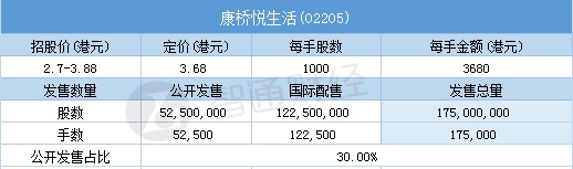 智通财经APP获悉,7月15日,康桥悦生活(02205)配售结束。配售招股价2.7-3.88港元,最终定价3.68港元,每手3680港元。