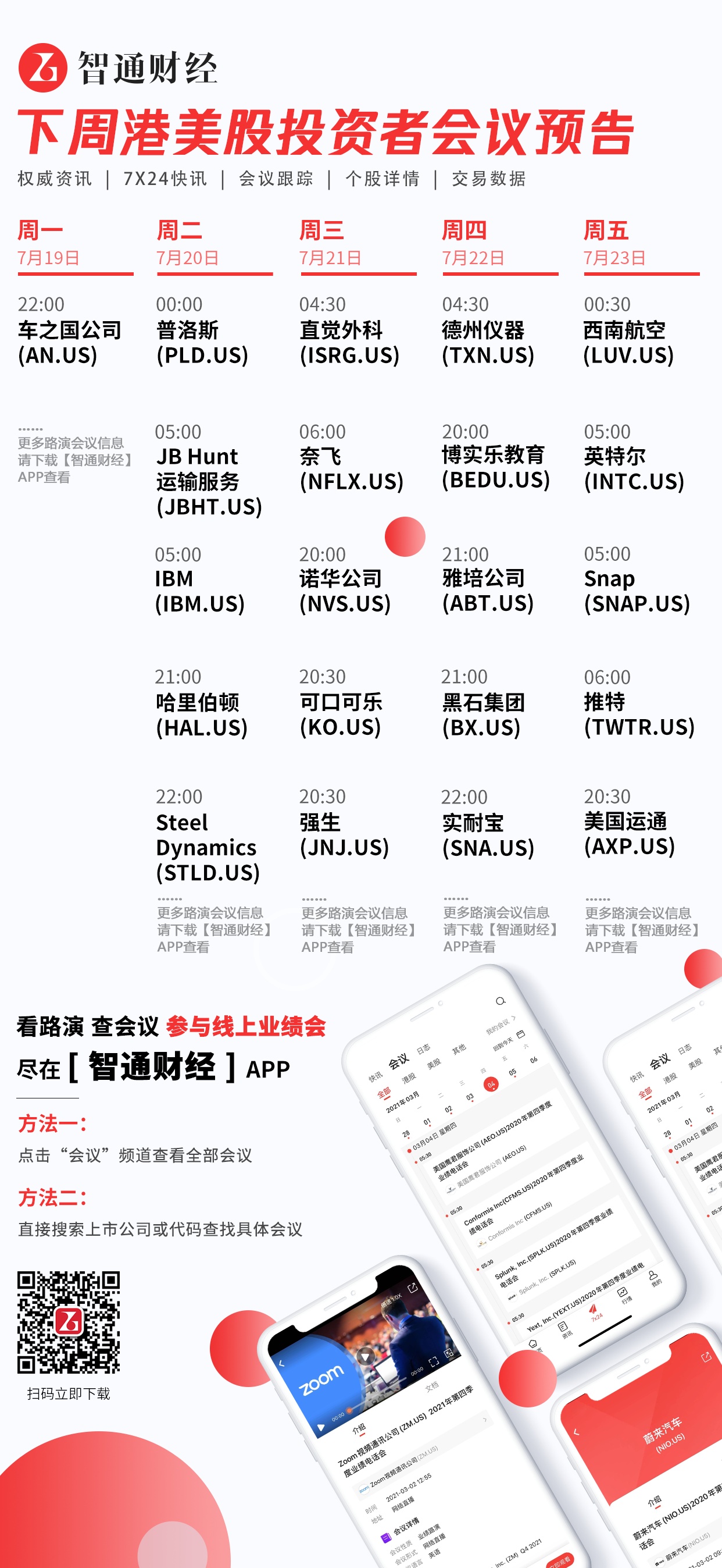为您整理的下周(7月19日-7月23日)港美股上市公司会议日历。