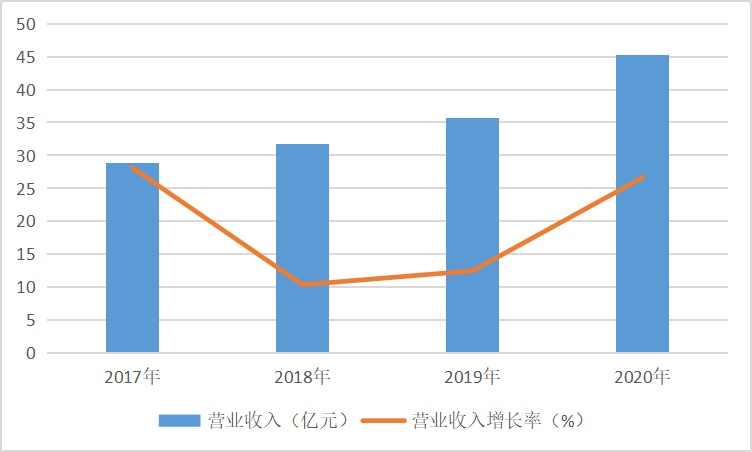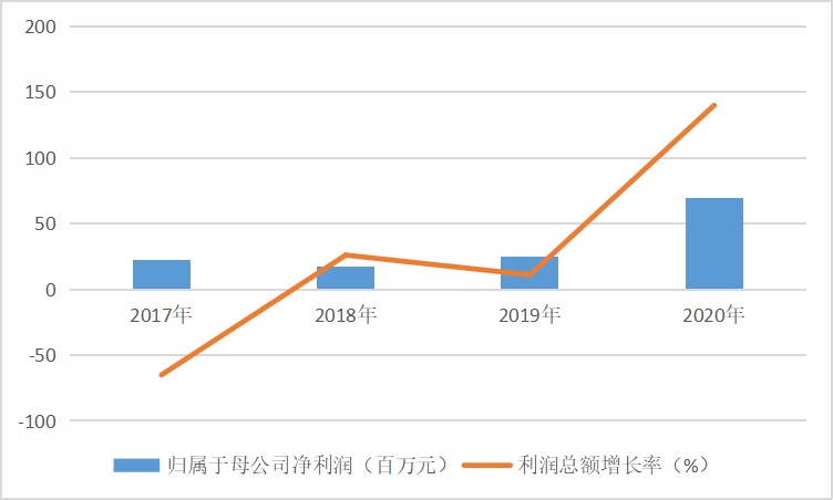 2017年至2020年,京东方精电的营收分别为28.79亿元、31.77亿元、35.74亿元、45.27亿元;营收增长率分别为28.11%、10.36%、12.48%、26.66%;归属于母公司净利润分别为2211.3万元、1713.3万元、2502万元、6863.9万元;利润总额增长率分别为-65.06%、26.01%、10.93%、139.91%。