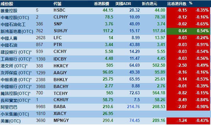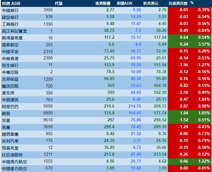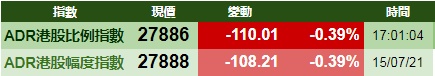 智通财经APP获悉,周四美股三大指数涨跌不一,港股ADR指数下跌,按比例计算,收报27886点,下跌110.01点或0.39%。