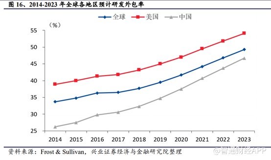 研发支出增加的同时,新药的研发成本率也在持续上升,迫使药企提升药物研发效率,而将部分非核心的研发环节外包给专业的CRO公司可显著缩短药物研发时间、节约研发成本,较好地满足了药企的需求。同时,将部分生产环节外包给CMO公司完成亦可使药企在减少资本开支、聚焦核心业务等方面获益。