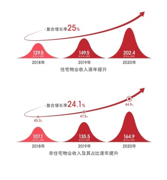 目前,在业务模式上,融信服务形成的“1+N”发展战略格局是以基础物业管理服务为主,以非业主增值服务和社区增值服务等多元化发展来拓展收益来源。