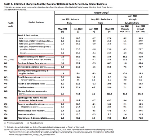 汽车和零部件零售销售下降了2%,可能是由于汽车制造商面临供应链危机,库存有限。全球半导体短缺限制了汽车生产并推高了价格。