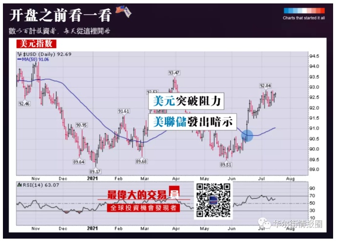 对照图表看,美元起涨与美联储6月份货币政策会议时间相同,那次会议上美联储暗示比市场预期更早(可能最早在2022年)。美元指数仅6月16-18日期间就上涨了1%,美元上涨,往往代表市场的不安。