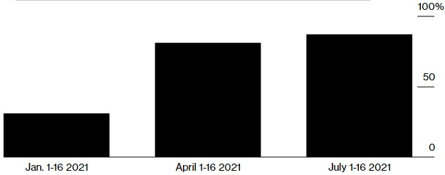 与此同时,通胀和企业将成本转嫁给客户的能力已成为本财报季的最大主题之一。媒体本月追踪的标普500指数成份股公司的业绩电话会议中,87%的公司提到了“通胀”一词,而去年同期这一比例为33%。