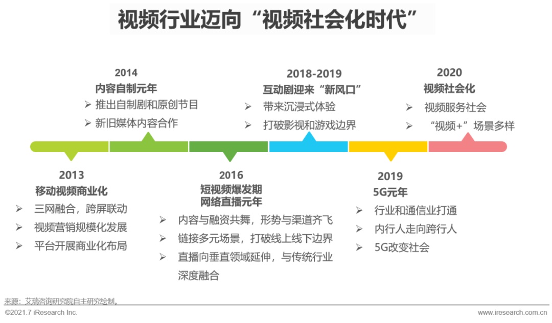 内容上,网络自制剧、短视频的出现打破传统媒体的垄断地位,迫使其加速转型。形式上,音视频通话、直播以互动性强的特点,向电商、游戏、办公等垂直领域延伸。技术上,“5G+AI+4K”的战略布局推进了新旧媒体一体化发展,借助电视媒体在音视频制作方面的优势,提升高品质新媒体制作能力。同时,技术进步也降低了视频生产的成本和技术门槛,为加速推进传统行业的智能化裂变做出贡献,使应用场景进一步拓宽。