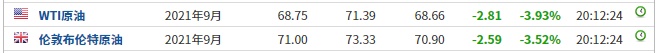 截至发稿,WTI原油跌3.93%,报68.75美元/桶。布伦特原油跌3.52%,报71.00美元/桶。