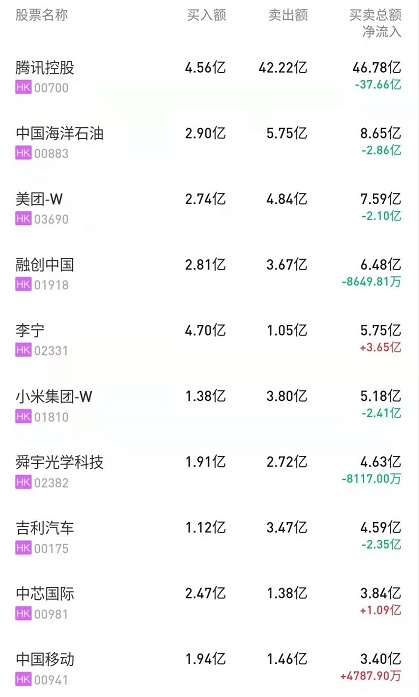 此外,中移动(00941)、中芯国际(00981)分别获净买入4787万、2548万港元。而小米集团-W(01810)、舜宇光学(02382)分别遭净卖出2.41亿、8117万港元。