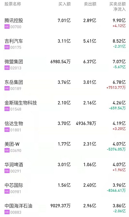 华润啤酒(00291)获净买入1.95亿港元。消息面上,华润啤酒发布盈喜,预计上半年股东应占溢利较2020年同期增加至少100%。瑞信发布研究报告称,将华润啤酒列为行业首选股,目标价由80港元升至82港元,重申“跑赢大市”评级。该行相信,公司的超高端品牌销售增长超预期,毛利率预计有稳定扩张,经营开支也具纪律,公司未来数年超高端品牌年复合增长率可达20%,公司近期也升至2025年预期25%。
