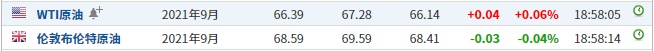 截至发稿,WTI原油涨0.06%,报66.39美元/桶。布伦特原油跌0.04%,报68.59美元/桶。