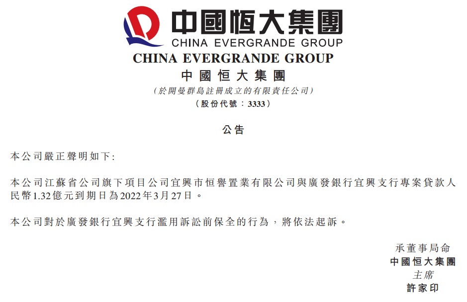 尽管恒大反应迅速于当晚发声,表明该笔贷款到2022年3月27日才到期,并将起诉银行滥用诉前保全,但翌日中国恒大和恒大汽车仍双双再跌超10%。不禁让人产生疑问:恒大究竟怎么了?