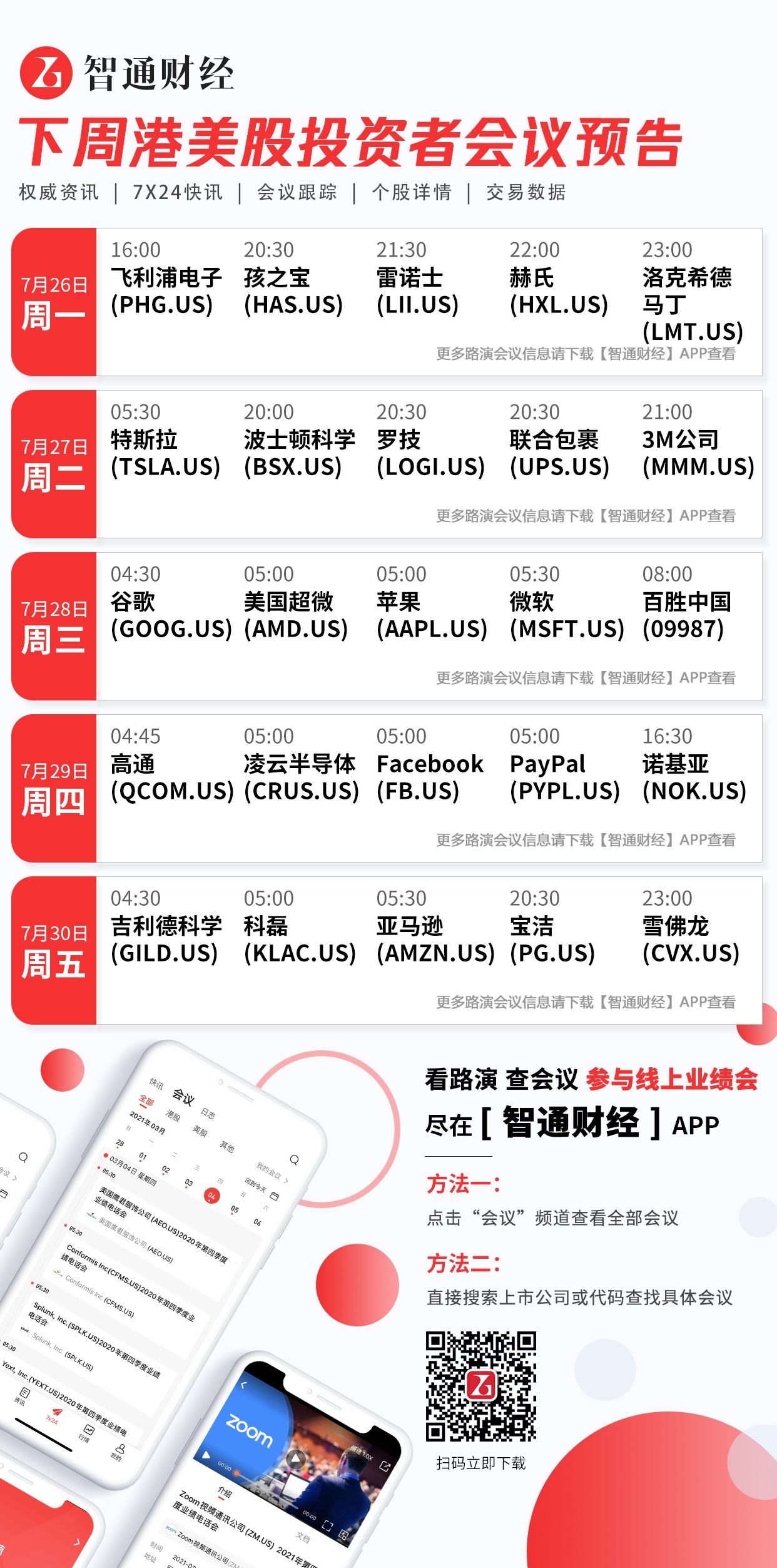 为您整理的下周(7月26日-7月30日)港美股上市公司会议日历。