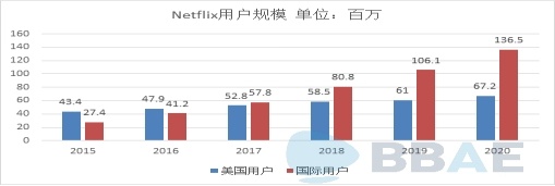 目前Netflix致力于开发非英语内容,进一步开拓国际市场。根据其此前披露的信息,Netflix目前国际用户数量已是美国本土用户数量的两倍。