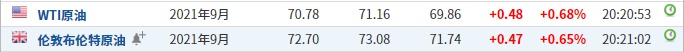 截至发稿,WTI原油涨0.68%,报70.78美元/桶。布伦特原油涨0.65%,报72.70美元/桶。