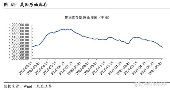 由于2020 年上半年由于油价暴跌导致各国进行大量的石油储备,在2020 年 6 月达到巅 峰。根据过往经验库存周期一般需要一年时间来消化,当前时点正好位于库存顶峰一周年处,库存量降至合理水平。