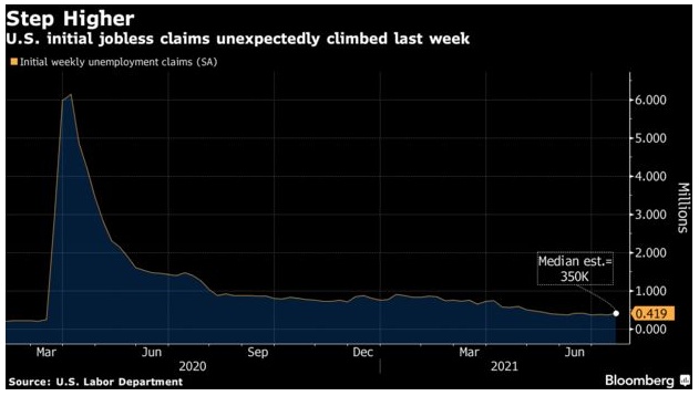 初请失业金人数意外上升,反映了密歇根州、德克萨斯州、肯塔基和密苏里四个州失业人数的大幅增长。虽然有许多因素使每周数据难以进行季节性波动调整,但迅速扩散的新冠病毒delta变种可能在未来几个月为数据注入进一步的波动性。