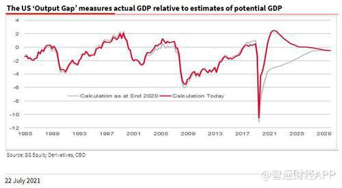 智通财经APP获悉,周四,法国兴业银行分析师Albert Edwards在最新报告中表示,他注意到“一些令人震惊的事情”,在国会预算办公室(CBO)的最新预测中,CBO大规模地修改了他们对美国产出缺口的计算,而这表明美国的通胀压力比以前想象的要大得多。