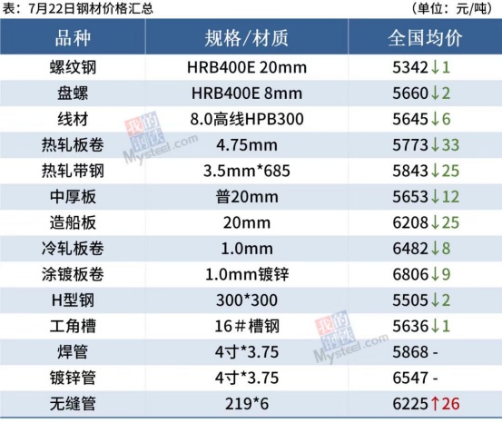 颇有意味的是,虽然二级市场上钢铁股涨势凶猛,但据Mysteel网站数据显示,7月22日国内钢材市场价格多趋弱调整。该网站预测,短期内现货市场的活跃度或将紧随情绪变化,而情绪的偏向更大概率集中在粗钢产量压减的预期短期能否继续兑现落地,短期钢胚价格或将保持高位震荡。
