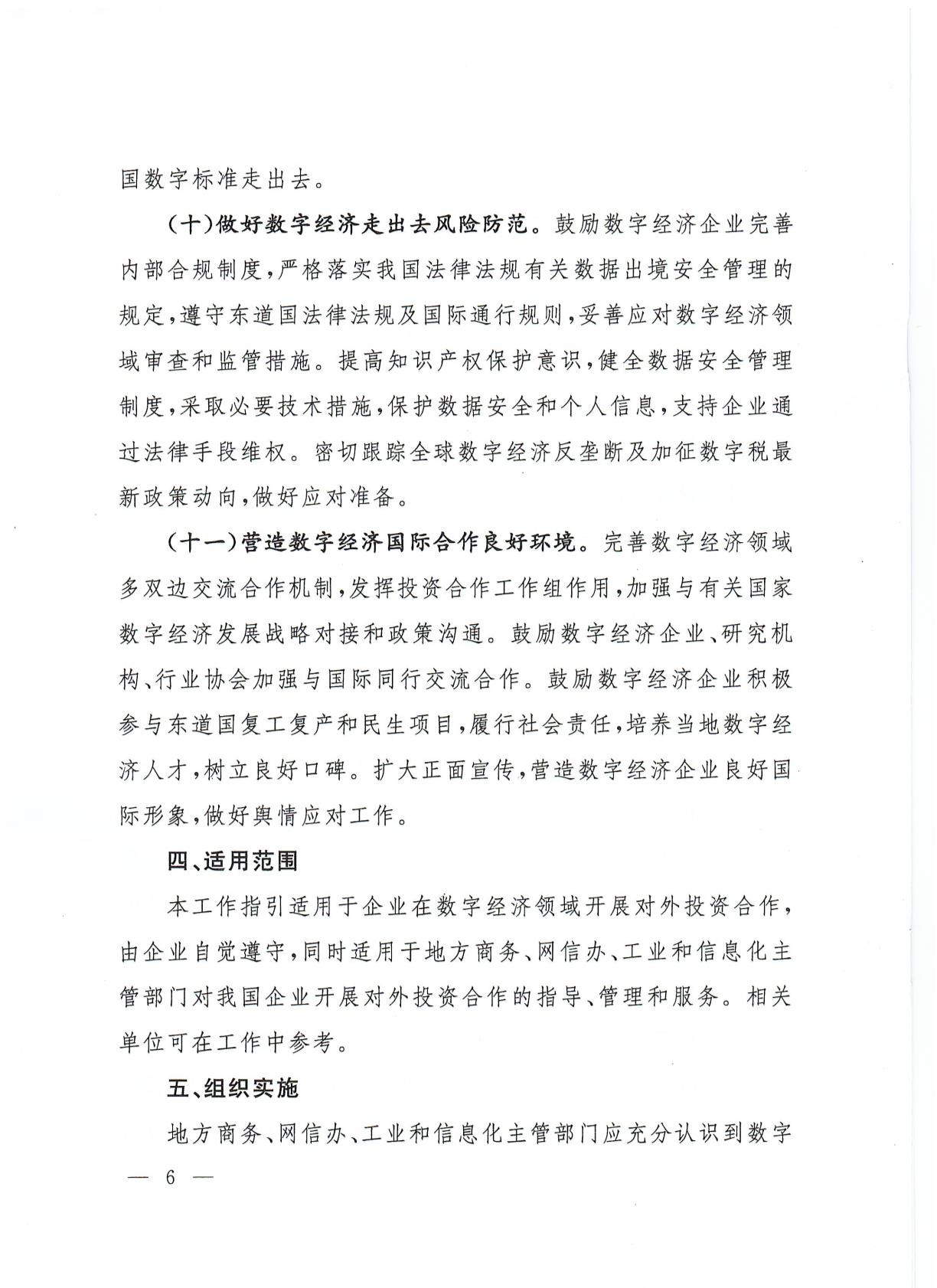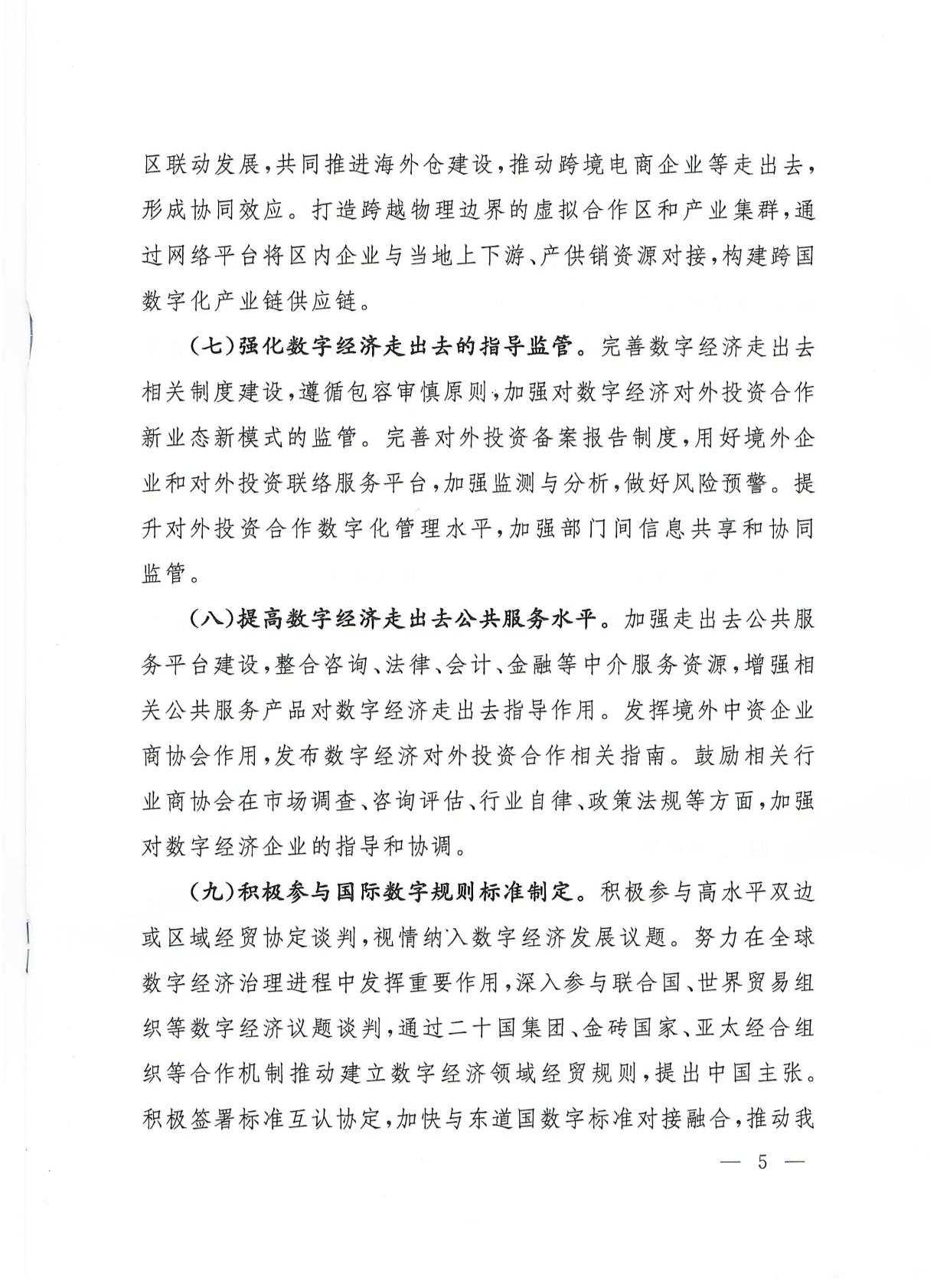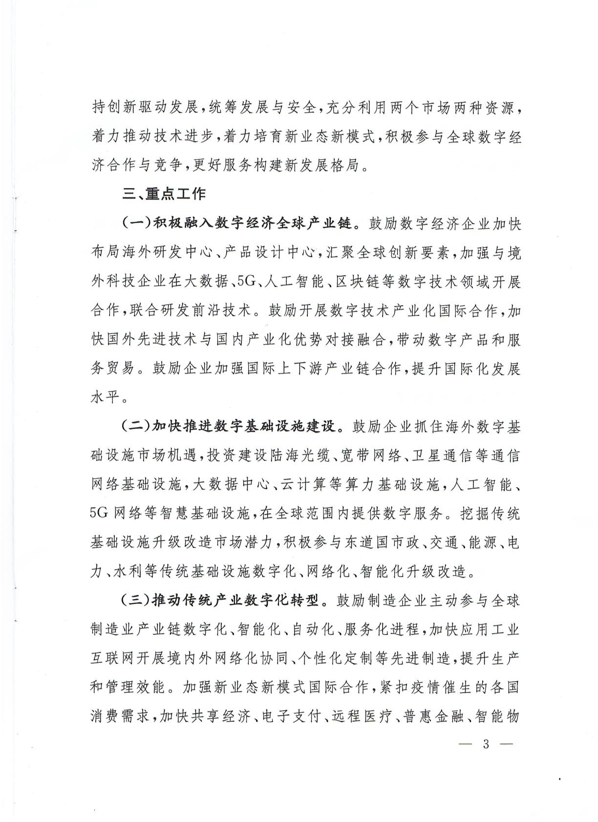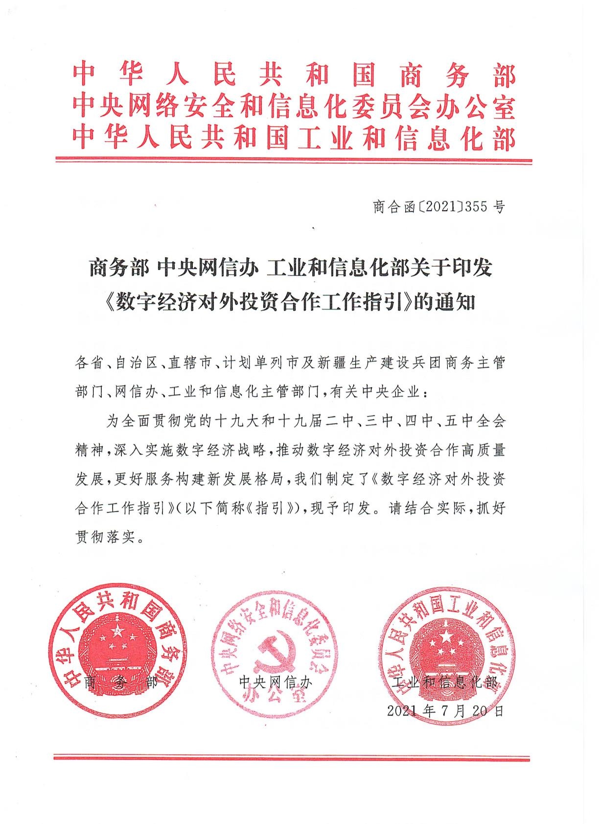 智通财经APP获悉,7月23日,商务部、中央网信办、工业和信息化部发布关于印发《数字经济对外投资合作工作指引》的通知。其中指出,鼓励企业积极融入数字经济全球产业链。鼓励数字经济企业加快布局海外研发中心、产品设计中心,汇聚全球创新要素,加强与境外科技企业在大数据、5G、人工智能、区块链等数字技术领域开展合作,联合研发前沿技术。鼓励开展数字技术产业化国际合作,加快国外先进技术与国内产业化优势对接融合,带动数字产品和服务贸易。鼓励企业加强国际上下游产业链合作,提升国际化发展水平。