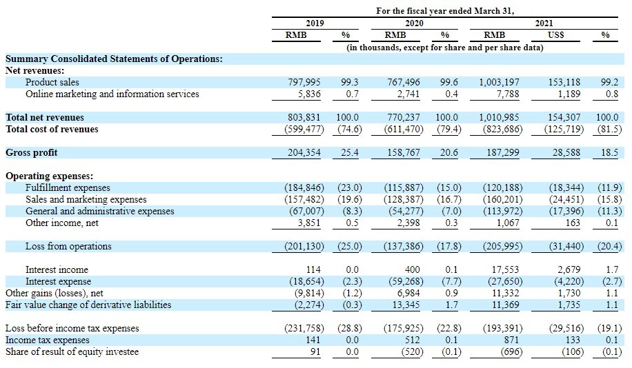 智通财经APP获悉,波奇宠物(BQ.US)向美国SEC递交了20F报告,披露了公司截至2021年3月31日的2021财年年报和最新股权结构。年报显示,波奇宠物2021财年全年总营收为10.11亿元(人民币,下同),同比增长31.26%。