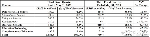 财报显示,业务数据方面,第三季度,公司国内K12学校平均学生人数为57188人,同比增长16.9%;国内K12业务营收为7.5亿元,同比增长72.5%,占总营收的71.2%。