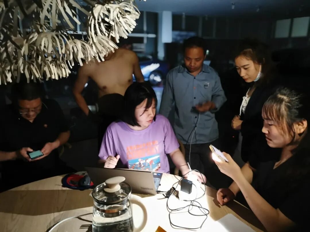 位于郑州市航海路与城东路交叉口的郑州郑沃店内突遭停水停电,但给前方一线救援人员的调度支援不能停。店内值班人员发动展车,用汽车电瓶给现场应急供电。所有人员围坐在一起,借着微弱的手机灯光,交流沟通,梳理救援线索、分配救援任务、协调资源。几天来,各店内人员轮流值班,许多同事都一直坚守在岗位上。饿了就吃面包,累了就趴在桌子上休息一会儿,为的就是给前方同事提供24小时不间断的支持。