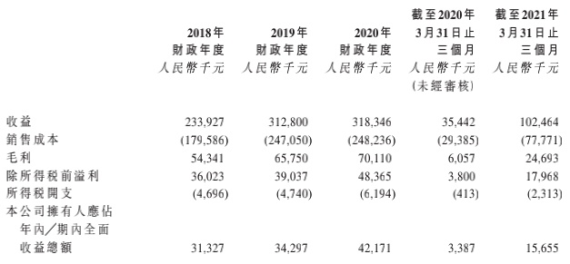 身处发展缓慢的小市场,伟立控股的业绩表现又如何呢?收入方面,2018年-2020年伟立控股分别实现营收2.34亿元、3.13亿元、3.18亿元,复合年增长率约为16.6%。需要指出的是,2020年公司的收入规模增速较上一年度明显放缓,主要是受疫情影响,2020年第一季度公司业务基本暂停,导致当季确认的收入大幅下跌。