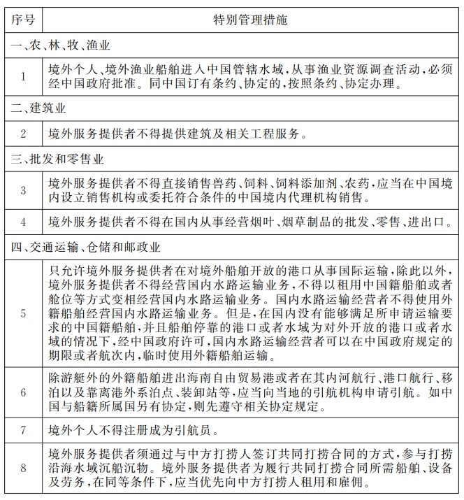 一、《海南自由贸易港跨境服务贸易特别管理措施(负面清单) (2021年版)》统一列出国民待遇、市场准入、当地存在、金融服务跨境贸易等方面对于境外服务提供者以跨境方式提供服务(通过跨境交付、境外消费、自然人移动模式)的特别管理措施,适用于海南自由贸易港,地域范围为海南岛全岛。未作特别说明的,仅适用于境外服务提供者向海南自由贸易港内的市场主体及个人提供服务。《海南自由贸易港跨境服务贸易特别管理措施(负面清单) (2021年版)》之外的领域,在海南自由贸易港内按照境内外服务及服务提供者待遇一致原则实施管理。