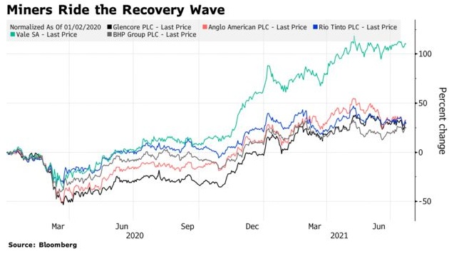 智通财经APP获悉,疫情期间涌入市场的数万亿美元刺激了对钢铁、铁矿石和铝等大宗商品的需求,推动其价格大幅走高,也令通胀压力波及全球经济,采矿业成为了这场疫情复苏计划中最大的收益者之一。