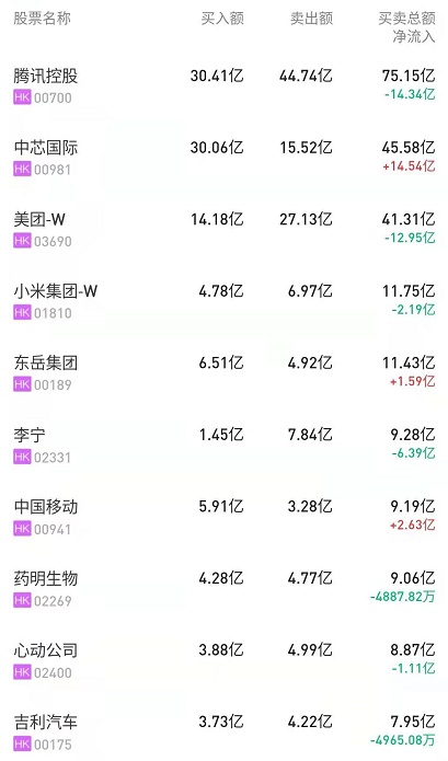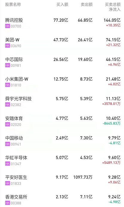 港股通(深)十大活跃成交股
