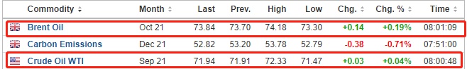 截至发稿,WTI原油涨0.04%,报71.94美元/桶。布伦特原油涨0.19%,报73.84美元/桶。