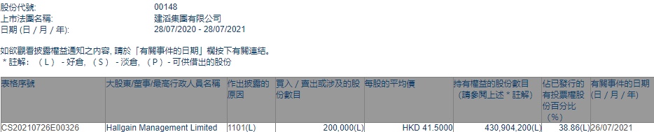 Limited增持建滔集团(00148)20万股,每股作价41.5港元,总金额约为830万港元。增持后最新持股数目约为4.31亿股,最新持股比例为38.86%。