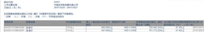 智通财经获悉,根据香港联交所最新权益披露资料显示,7月27日至28日,新高教集团(02001)连续两日获大股东、董事会主席李孝轩先生增持,合共100万股,两日均价分别为3.43港元/股及3.59港元/股,总计金额约354万港元。这并非李孝轩先生第一次增持新高教,2020年李孝轩先生曾多次增持公司股票,体现出其对公司长远发展充满信心。